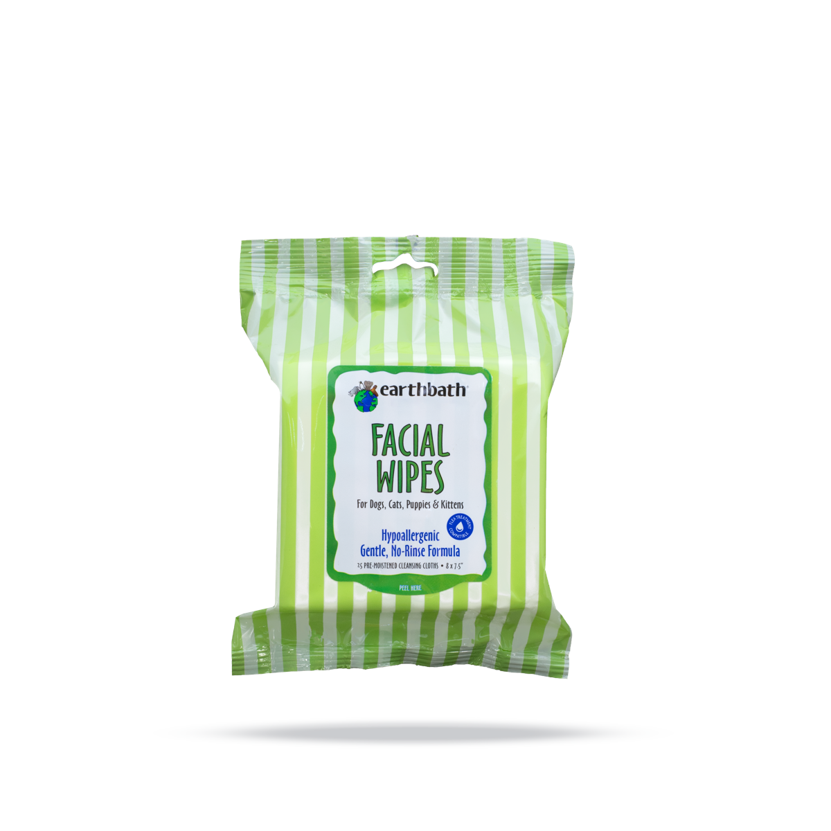 These natural & hypo-allergenic pH balanced facial wipes offer you a quick, convenient & safe way to clean away dirt, boogies, dander and drool from your pet's face. Use on the go or at the end of a bath - no more shampoo in the eyes and water in the snout! Fast and convenient. Formulated for use on all breeds and effective on breeds with folds such as Bulldogs, Pugs, & Shar-Peis. Suitable for daily cleaning.Brand | Earthbath |