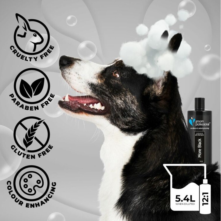 Get back to black with this colour enhancing shampoo! Restores colour in black and dark coated breeds without the use of dye or harmful chemicals.