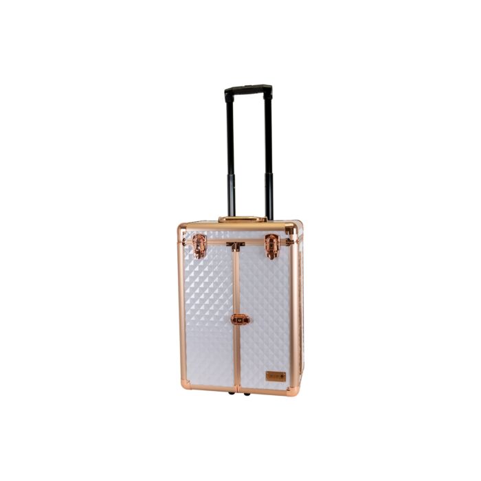 Groom-X Grooming Case Deluxe 2 Wheels & Telescopic Handle - Diamond Pattern White