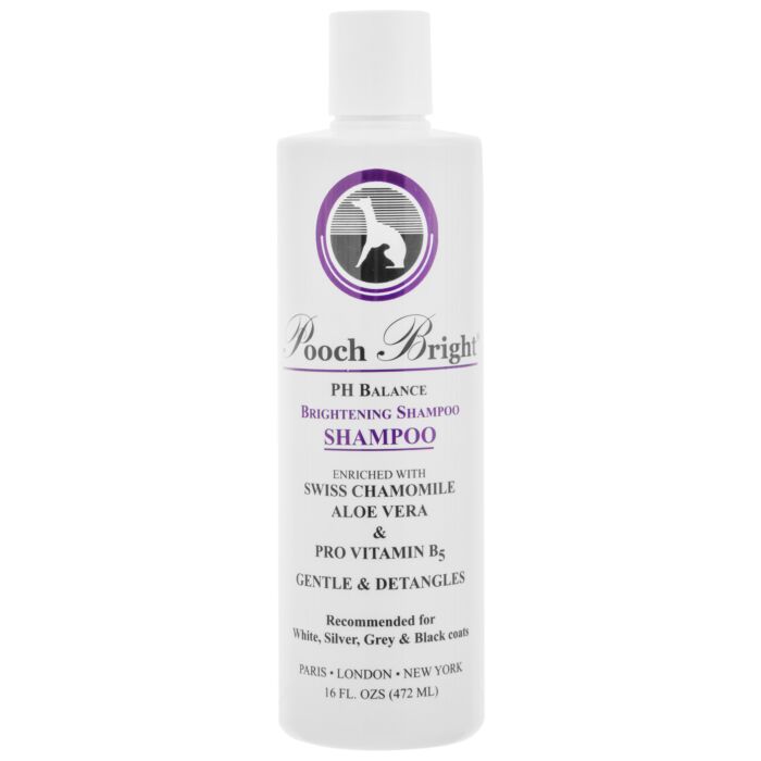Les pooch shampoos are considered by top breeders and styling professionals to be the finest in the world. From show shampoos and crème rinses to the hypo-allergenic and medicated line, Les Poochs use only the finest ingredients delivering the very best finish to both coat and skin.Only Pooch Bright contains the breakthrough formula based on our famous Opti-Bright technology. Enriched with Swiss Chamomile, Aloe Vera and Pro-Vitamin B5, this scientific blend of natural brighteners penetrates the hair shaft, counteracting the yellowing from the sun and the elements, resulting in a spectacular ""show white shine"" to the coat. This PH-balanced, gentle formula will nourish and moisturise your pet's skin with fine natural botanical extracts.