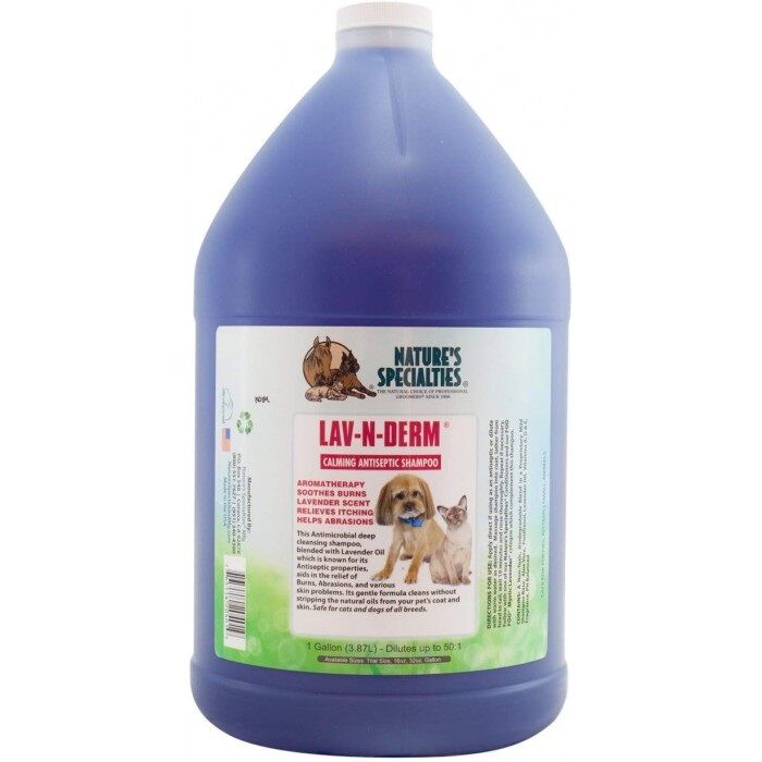Nature’s Specialties Lav-n-derm is gentle, calming shampoo with the relaxing fragrance of lavender, known for its antiseptic value and ability to clean deeply without stripping the coats natural oils. Dilutes up to 50:1, however, when using for antiseptic purpose, it is recommended to increase the dilution to 24:1 or 12:1 depending on coat type and situation.