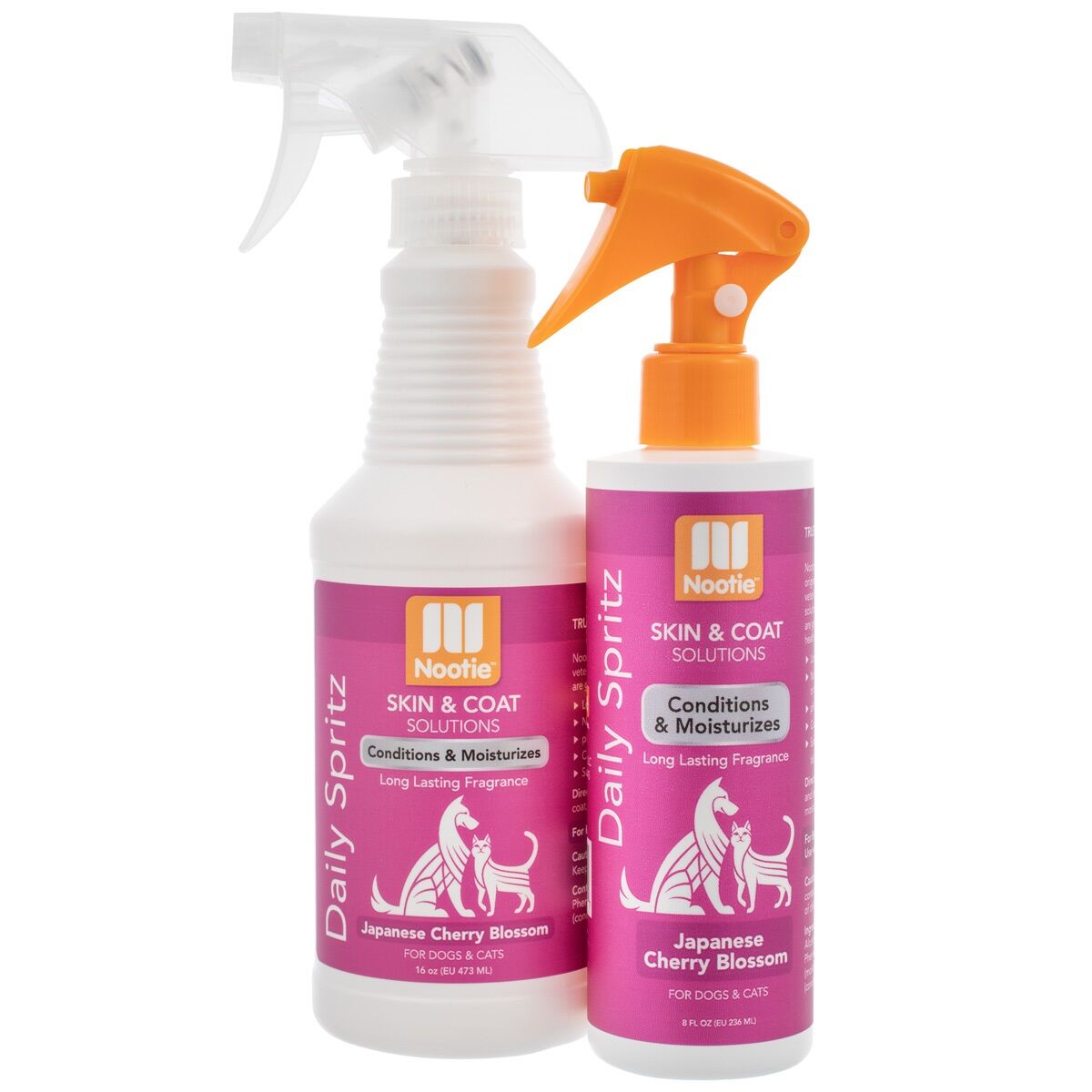 The bold exotic scent of our Japanese Cherry Blossom long-lasting fragrance will keep your dog smelling fresh and clean between baths while conditioning the skin and coat. Nootie’s Daily Spritz is made with natural ingredients and is soap and paraben-free. It’s long-lasting. and made with a gentle, conditioning formula that contains no sulfates or harsh chemicals. Gentle enough for everyday use! Find your favourite scent today!