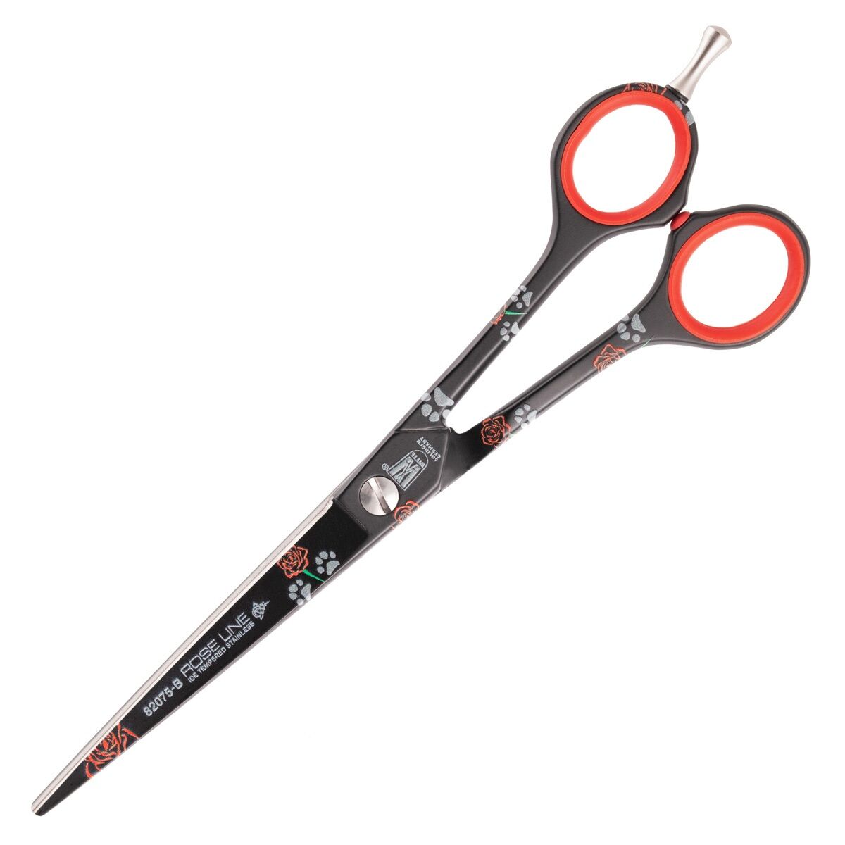 These RoseArt Scissors are perfect for professional dog groomers that require a durable scissor that will cut thick hair and grip as it cuts and shapes. Perfect for hard working professionals who have great fun at their work. Low maintenance scissors for real hard work. Stainless steel with a durable paw and rose print design. Straight scissor for general grooming work on all coat types.