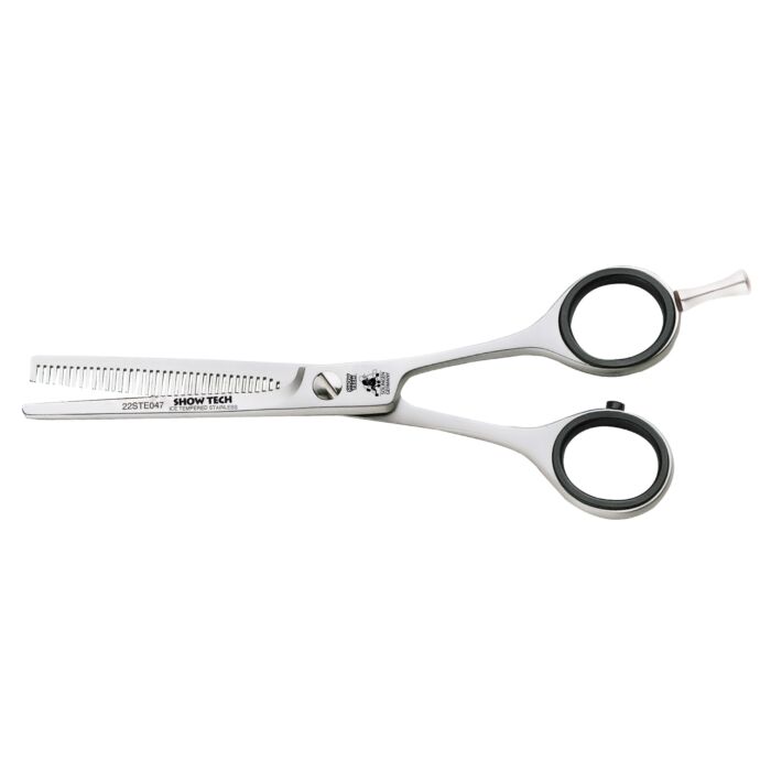 Show Tech Scissors are designed and produced specifically for dog groomers. Hand made in Solingen, Germany, each scissor is meticulously hand crafted in a 150 step manufacturing process. All models are forged from nickel-free stainless steel and ice tempered to ensure maximum hardness, this permits the creation of an ulta sharp cutting edge. The micro serrations on the blades guarantee an accurate and perfectly smooth cut which lasts. Show Tech Scissors are high quality professional tools at incredible value for money prices.