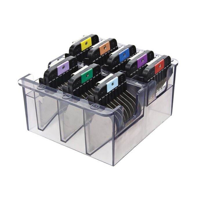 No more broken plastic comb guides. These new metal comb guides simply glide through the coat. Best used in conjunction with a No 30, can also fit 15 or 10 blade. Set of 8 in storage case. Sizes range from 3mm - 25mm. Compatible with A5 type blades (andis, oster, groom professional)